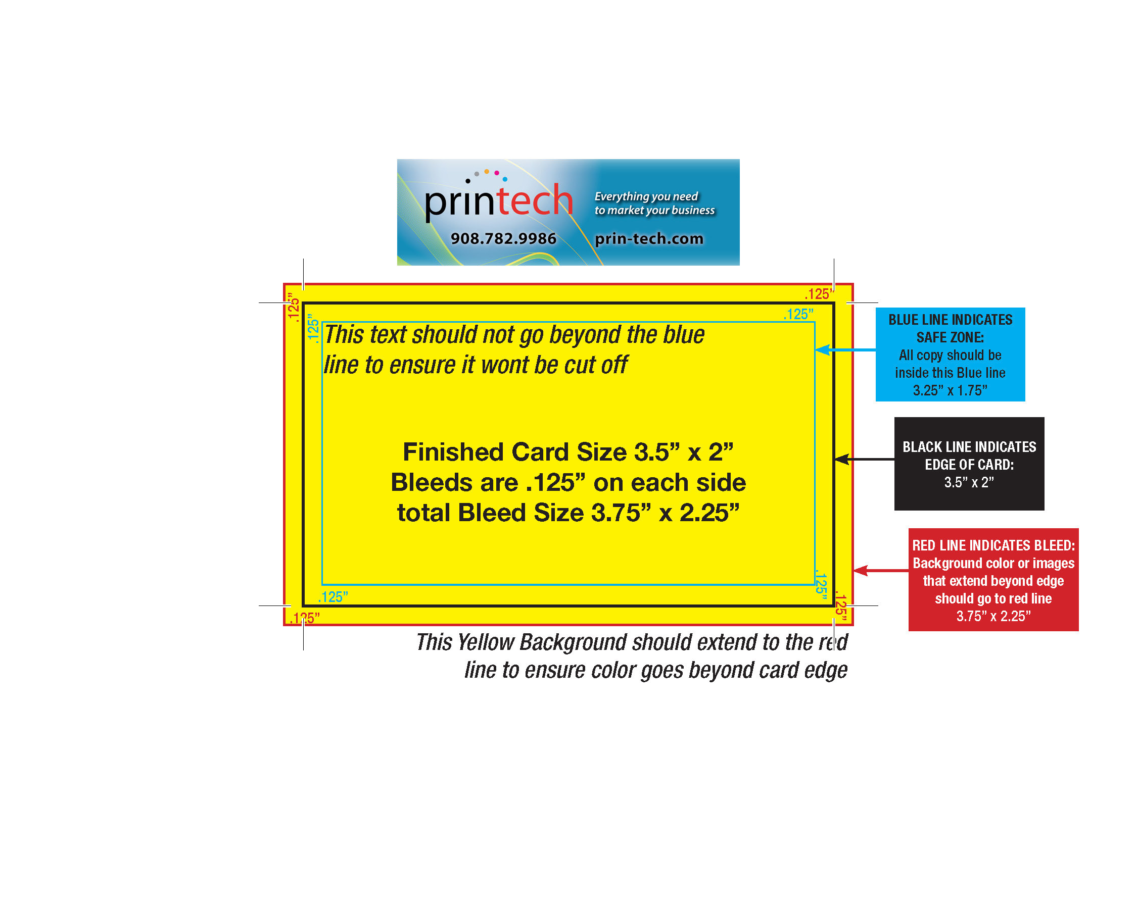 Using Printech's templates should minimize common problems and questions regarding how much bleed a file should have & how close text can be to the cut line.